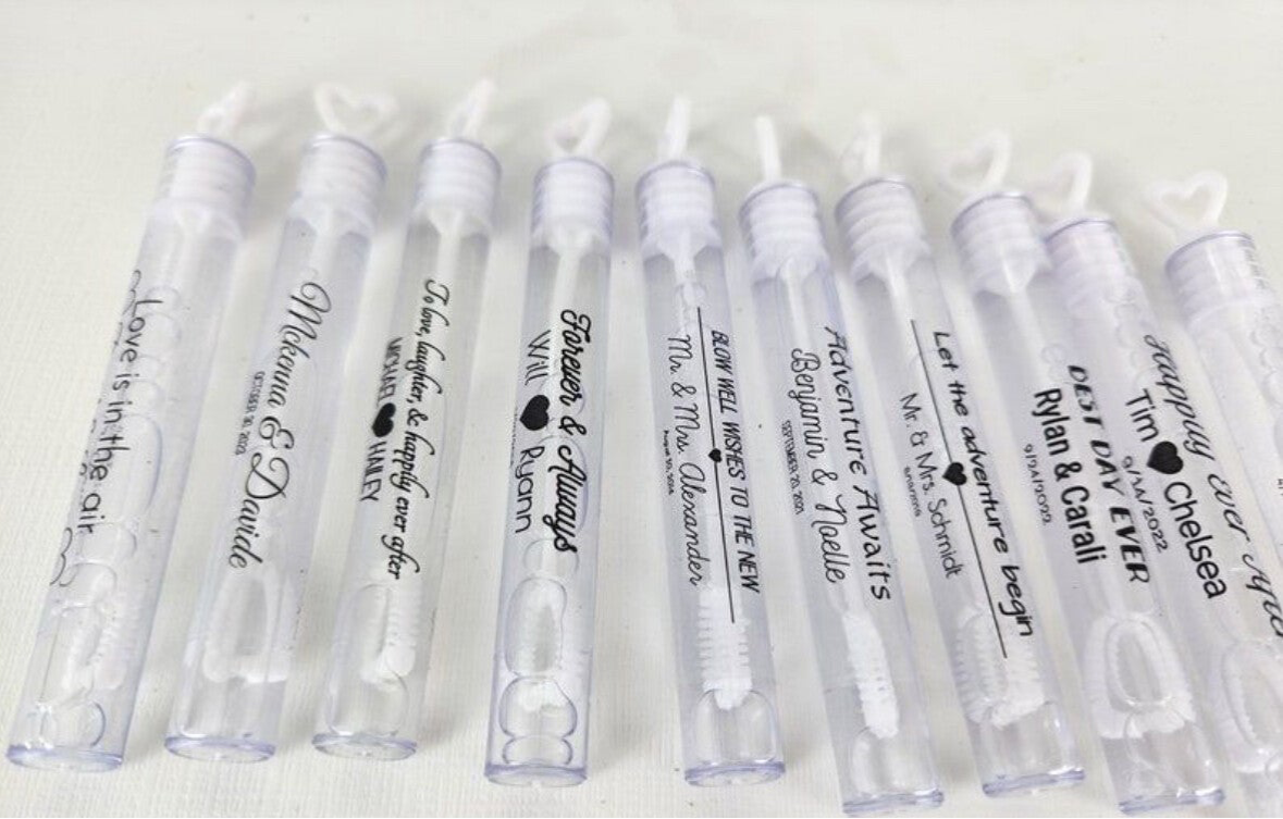 Tubes à bulles avec son étiquette personnalisée anniversaire Mariage baptême etc.